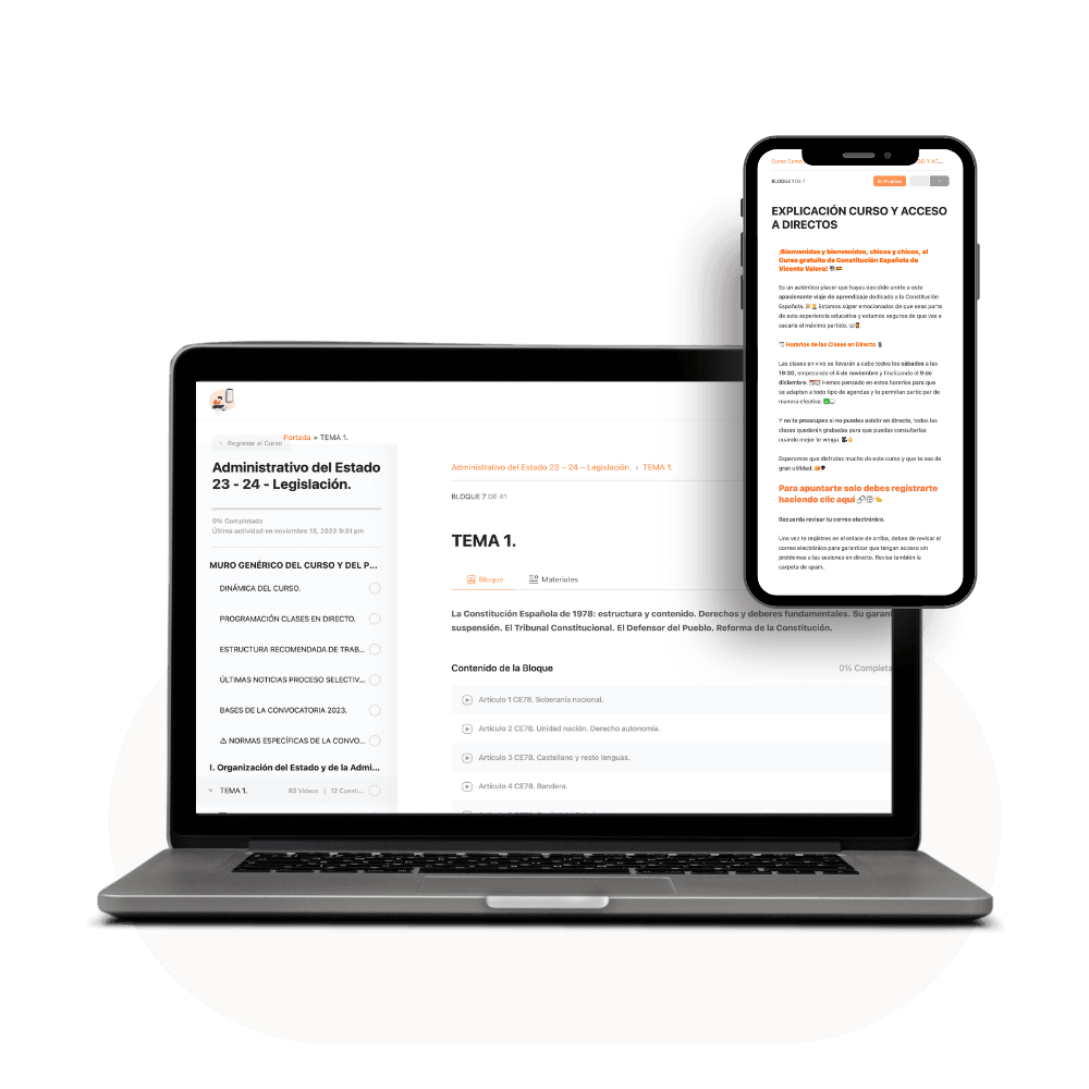 Probablemente sea el curso de Constitución Española más completo, desgranando TODO el articulado para que no se te escape nada. Te lo explico de una forma más coloquial e incido en todo lo RELEVANTE para que nunca te cacen en un examen.
